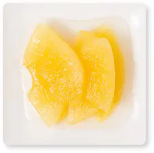 リンゴを砂糖シロップ漬けにした「アップルプレザーブ」。袋を開ければそのまま使えますが、その風味と食感、甘味や酸味は原料であるリンゴの品種や産地はもちろんのこと、カットや焼成といった加工によっても多様に変化していきます。